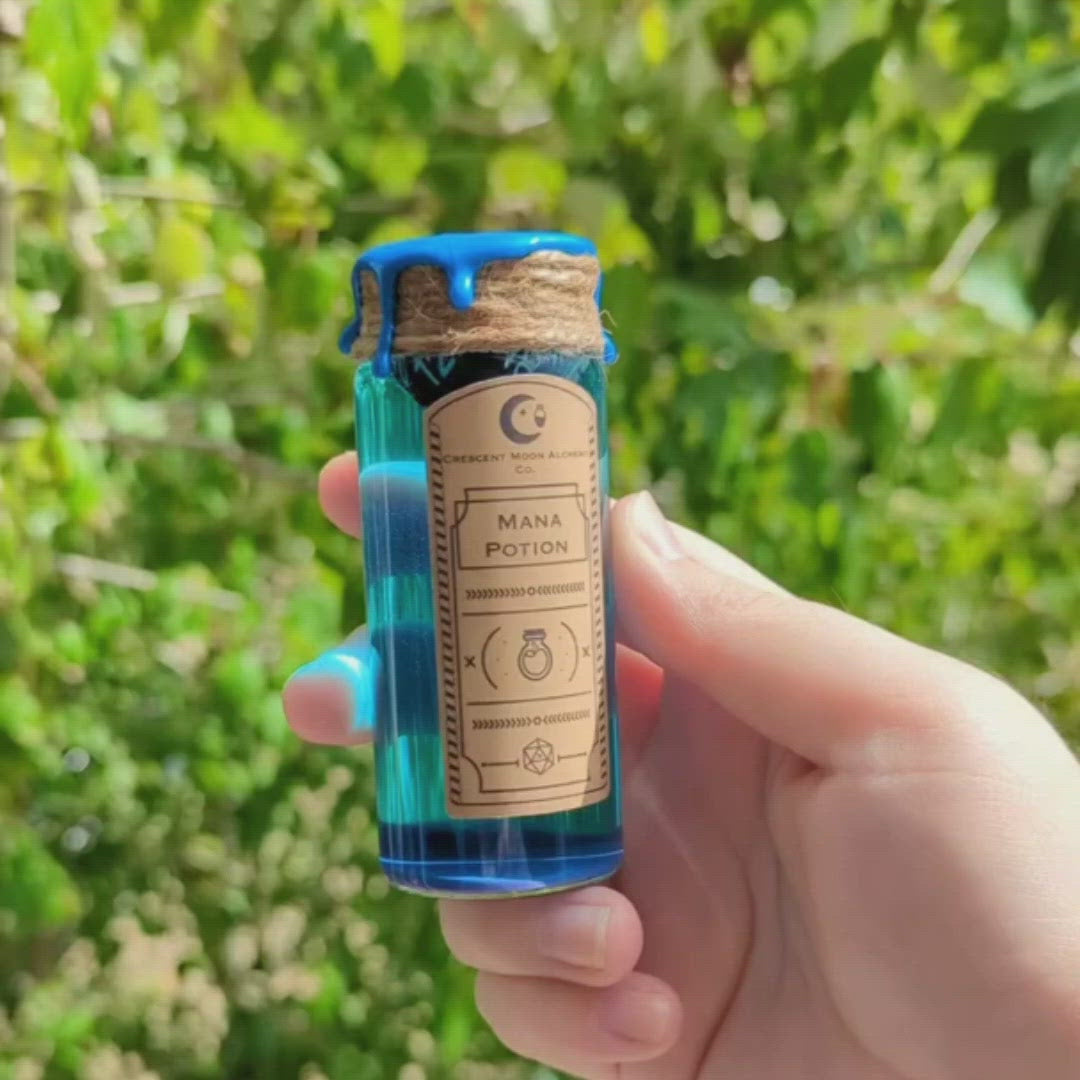 Contained within each potion bottle is a floating 20 sided die, typically used in D&D. Shake the bottle and see the transparent potion magically change into a beautiful, shimmering elixir. Then flip the bottle over and watch as the dice floats to the top of the swirling cloud, revealing your roll! Not only can you use these potions for your next D&D sesh, but they can also be used to determine where to eat, what self-care routines you do for the day, or how about what your next date night will be! All you need is a roll sheet and a couple ideas! There are endless possibilities (or at least 20!) Check out our tiktok page for more examples @crescentmoonalchemyco