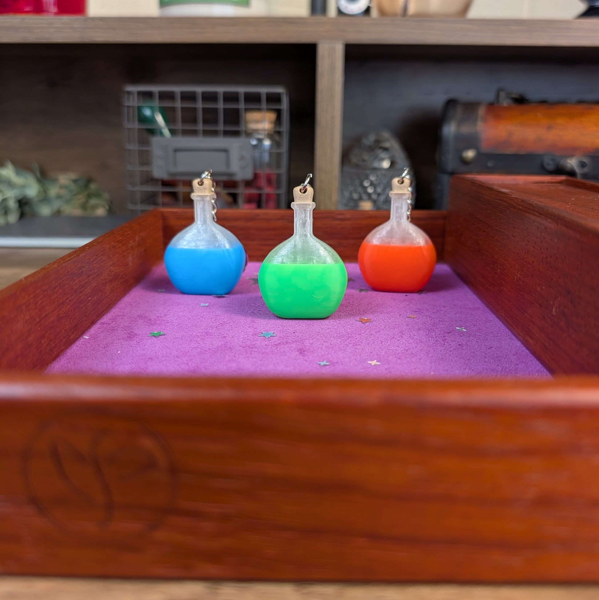 These luminous elixirs come as a set of three glow-in-the-dark keychains in vibrant orange, blue, and green. Designed in collaboration with our friends at Pretzel Prints, each potion glows softly in the dark adding a touch of magic to your everyday adventures! Perfect for decorating your bags and keys, or gifting to a party member at game night!