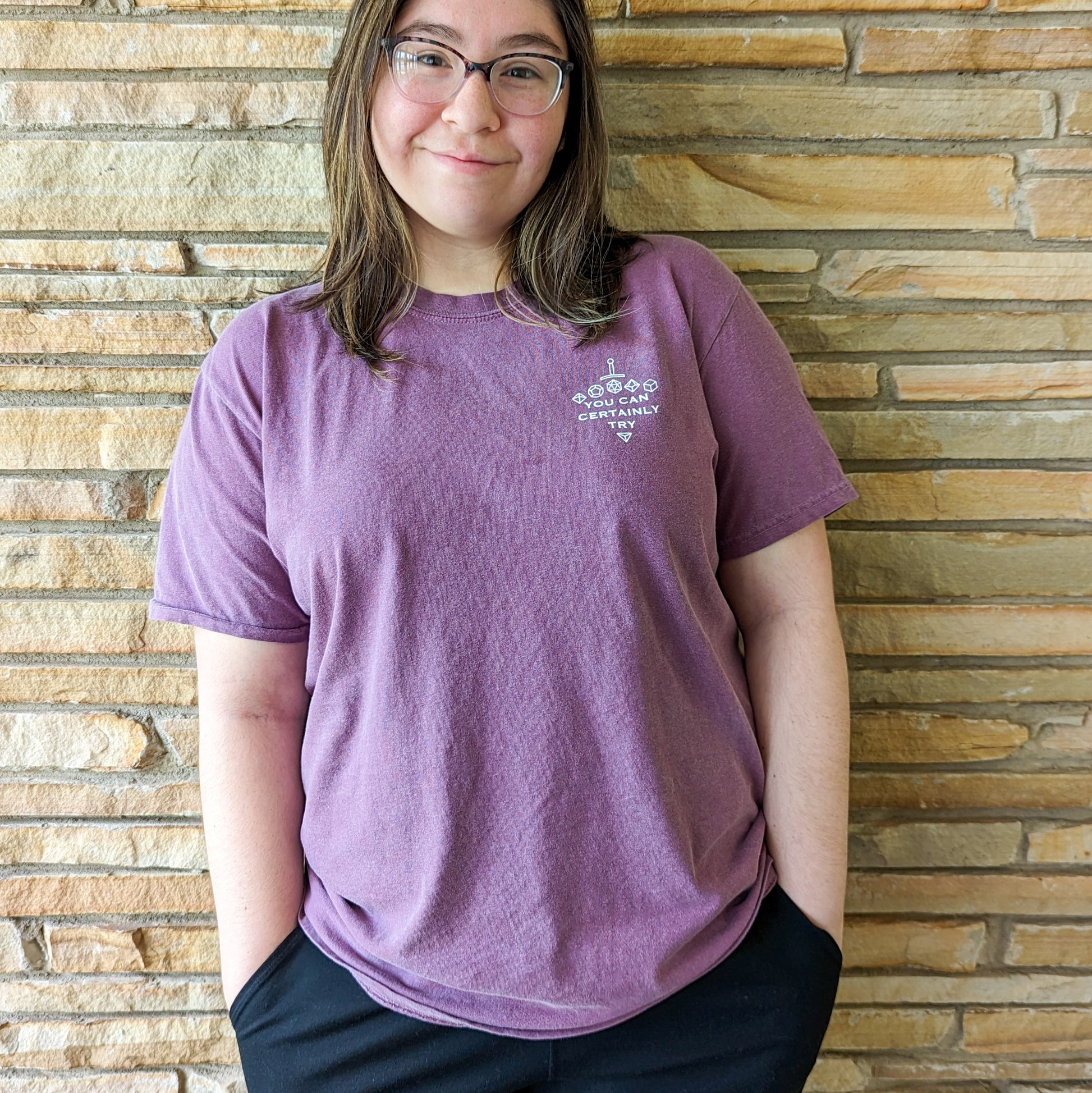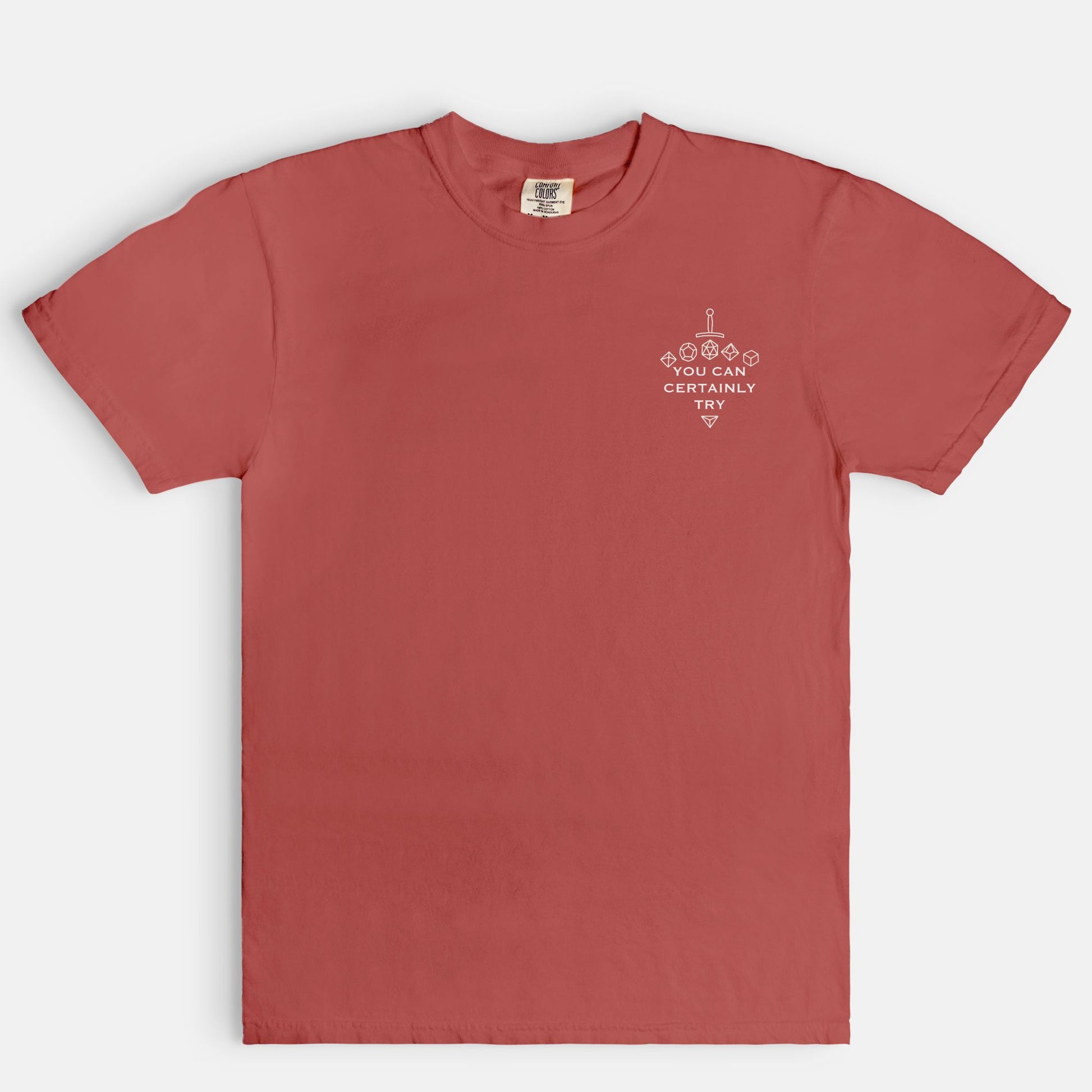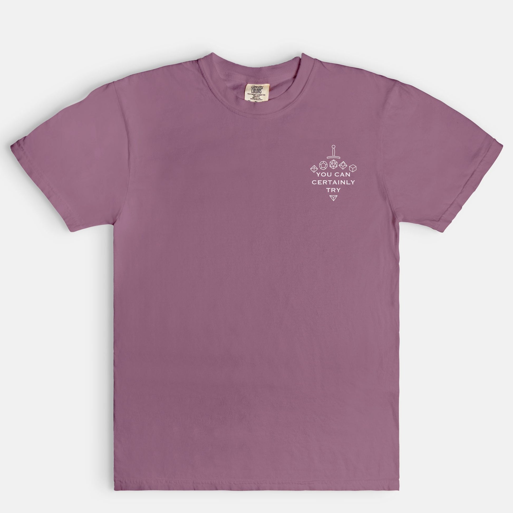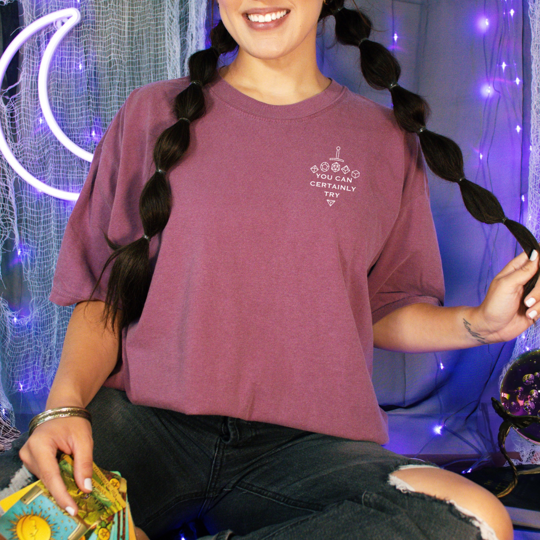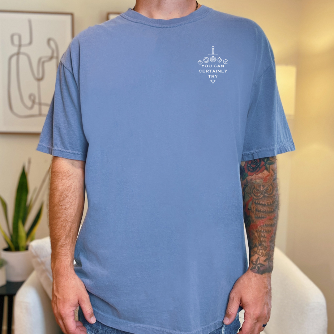 Ready to level up your game nights? Our "You Can Certainly Try" Tee will inspire you to try your luck and aim for victory. With its soft, cozy fabric, it's just what you need for those long, fun-filled evenings! Perfect gift for your DM!